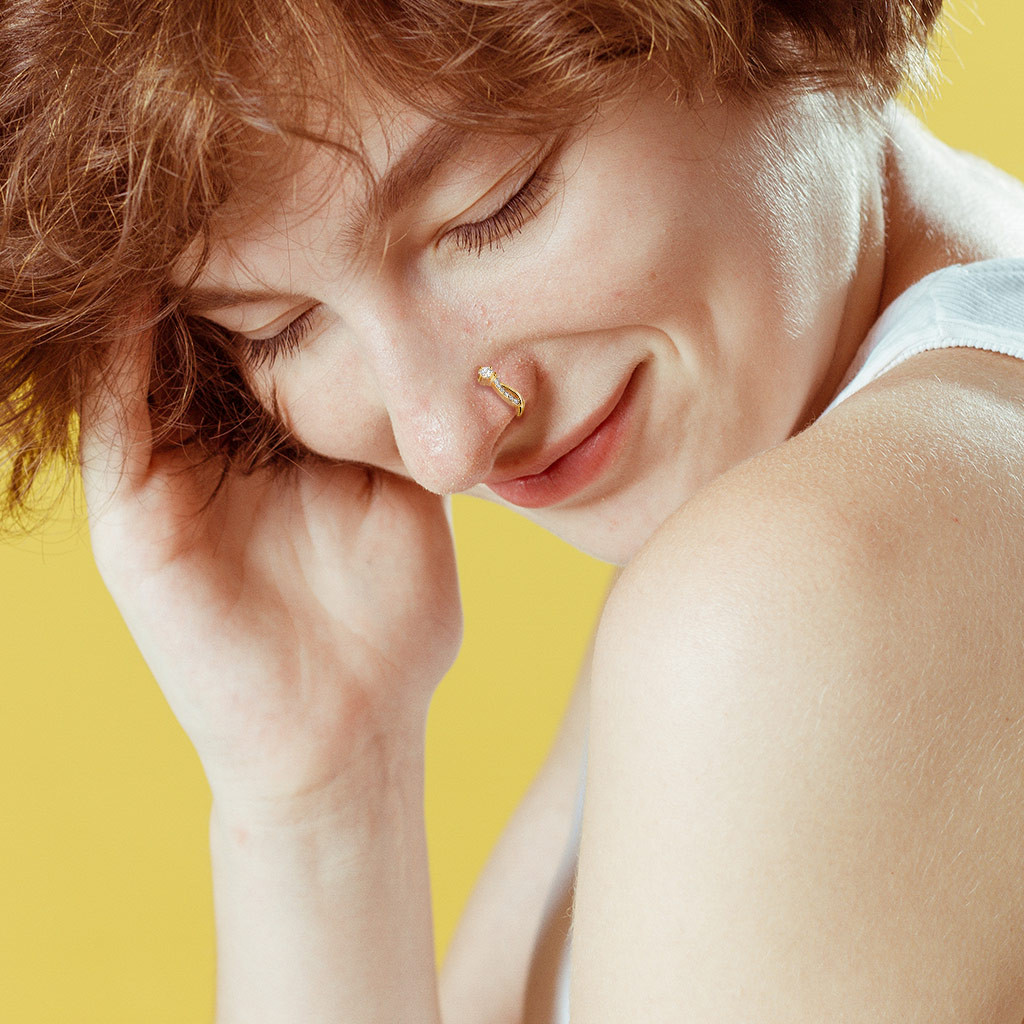 Piercing za v nos v obliki kristalnih vijugic z kristalčki.
