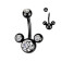 Piercing za v popek v čni barvi in belimi kristalčki.